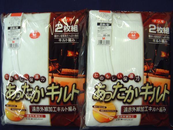 - <肌着館>グンゼ あったかキルト 長袖U首 白 M 4枚