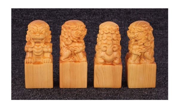 > [EasternStar] 海外発送 ライオン印鑑 縦約3.2cm横約3.2cm高さ約7.2cm 太行山脈 崖柏 ヤーバイ 木彫り 1個