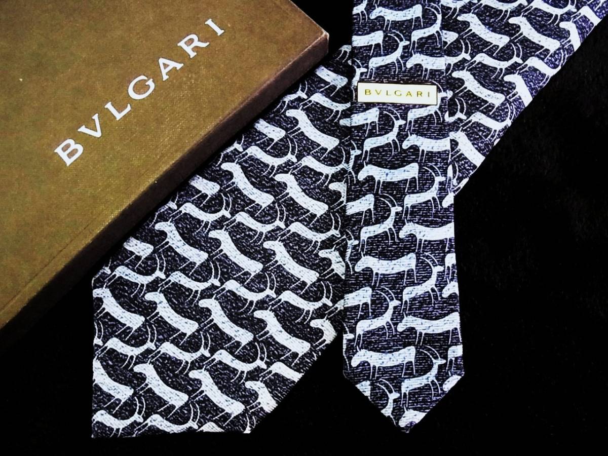 - 5G0053【超特売】★【BVLGARI】ブルガリ【トナカイ・鹿】 「最高級セッテピエゲ」 ネクタイ ★