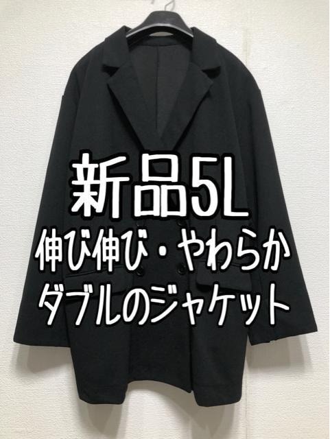 - 新品☆5L黒系♪伸びるストレッチ素材♪ダブルのやわらかジャケット☆w728