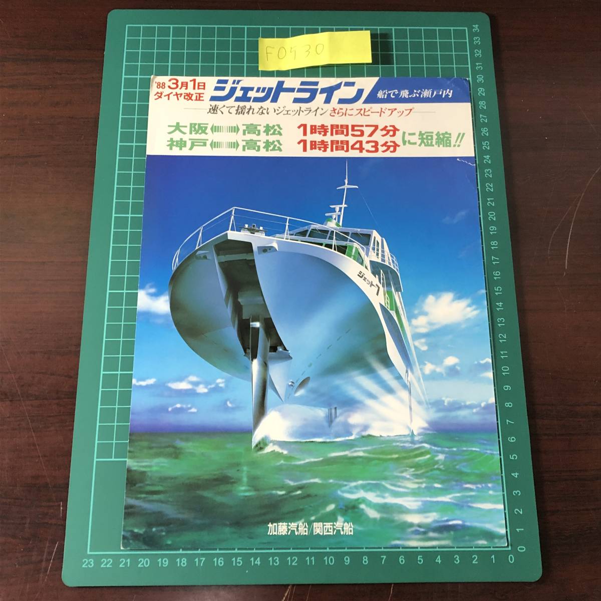 - ジェット7 ジェットライン 加藤汽船 関西汽船 大阪・神戸~高松 昭和63年頃 チラシ パンフレット 【F0530】