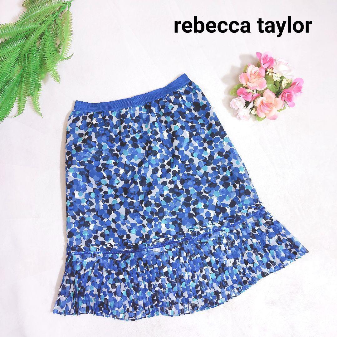 > rebecca taylor シルク調 スパンコール使い&ラメ混スカート 表記サイズ2 M 薄手 青ブルー系 80480