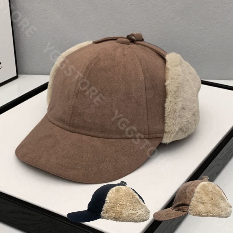 > YGG★つば付き フライトキャップ フェイクファー スエード生地 パイロット ワンサイズ 浅め 秋冬 ファッション おしゃれ 帽子 韓国 浅め