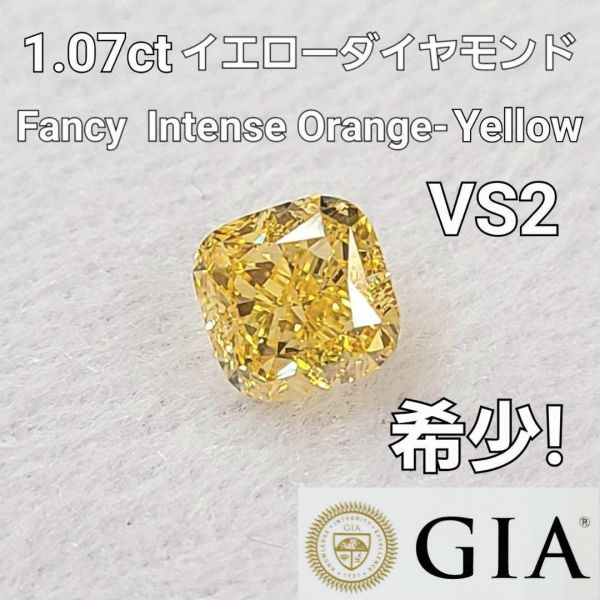 - 【 GIA 鑑定書付】 1ct ファンシー インテンス オレンジ イエロー ダイヤモンド スクエア ルース 裸石 Fancy Intense Orange Yellow