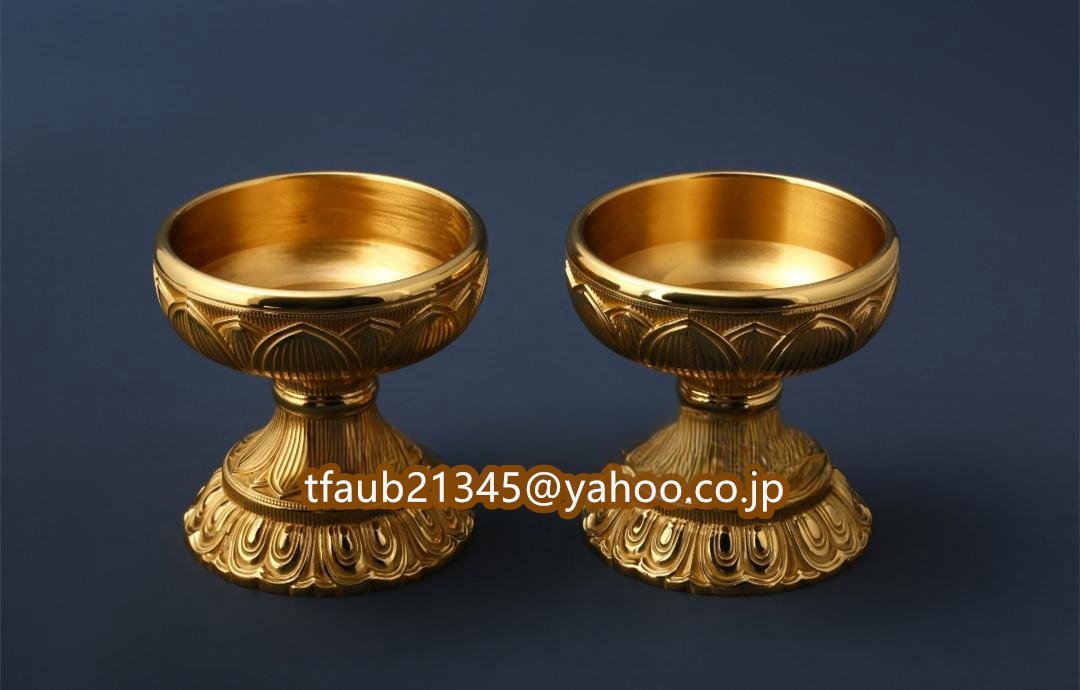 - 「密教法具 寺院用仏具」真言宗 蓮華型法具 仏器(一対) 仏具 仏教美術 筋彫り 真鍮製 磨き仕上げ 高さ9cm