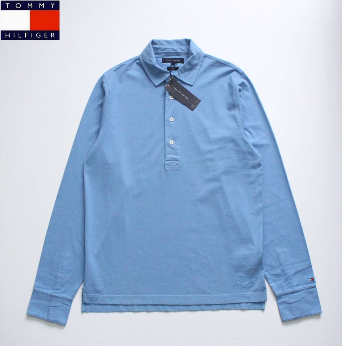 - 未使用【 TOMMY HILFIGER トミーヒルフィガー 】コットン100% 長袖 ポロシャツ M/SLIM FIT(大きめ) 11-2221626-020 定価\10,290 薄手 水色