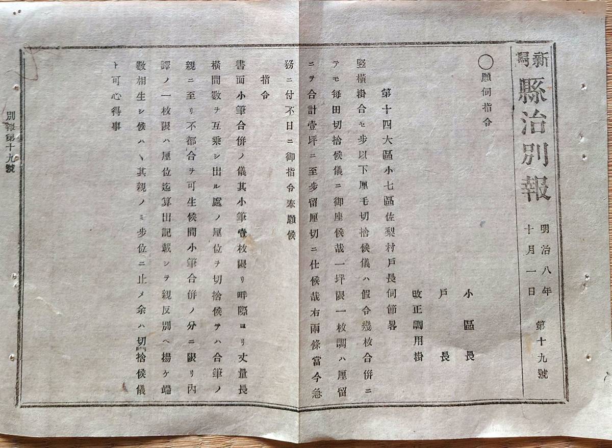 - f23102623〇明治布告布達 新潟 県治別報 願伺司令 佐梨村 明治8年〇和本古書古文書
