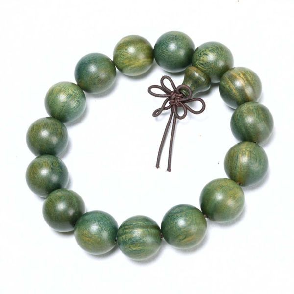 > [EasternStar] アルゼンチン 緑檀 グリーン サンダルウッド ブレスレット お守り 数珠 念珠 木珠 15mm 15玉 小孔