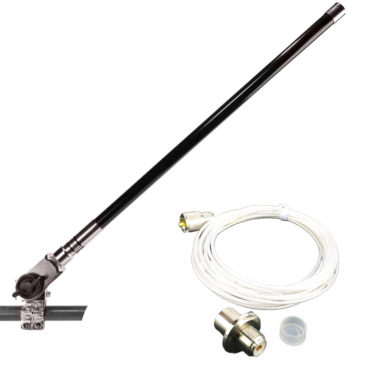 > 約54㎝ロングアンテナ(黒)+ルーフトップ キャリアアンテナ基台(シルバー)RB-46+SC316(1.5D-2V相当)同軸ケーブル5m MJL-MP フリマ対応