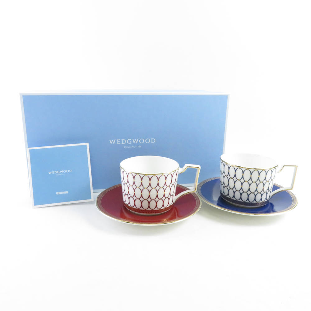> 未使用 WEDGWOOD ウェッジウッド ルネッサンスゴールド レッド ティーカップ&ソーサー 2客 ペア SY7419H