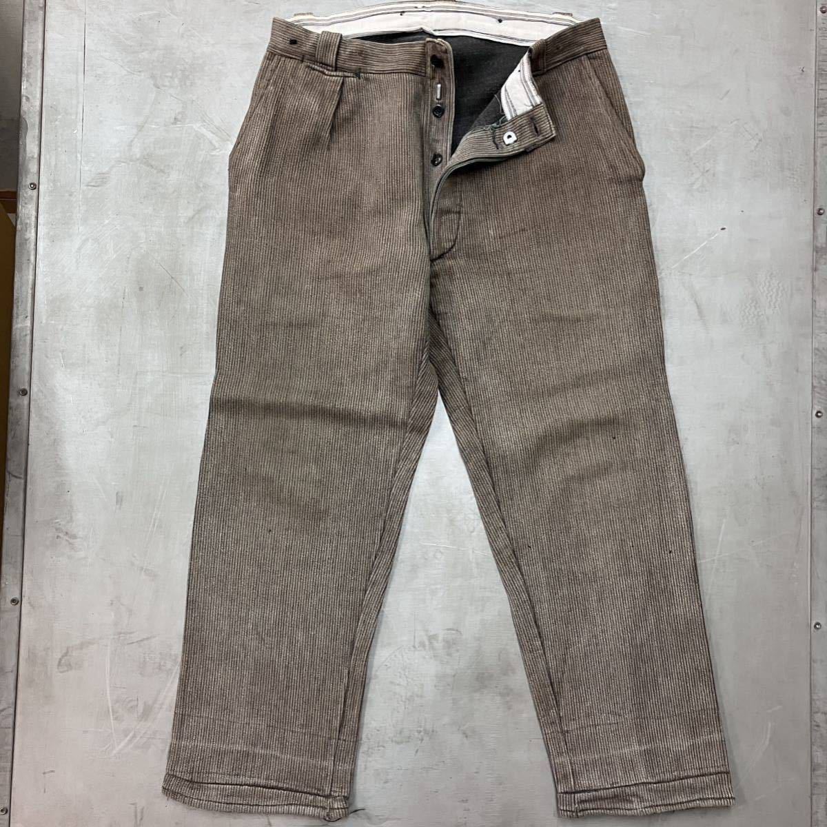 - 30S40S ビンテージ フレンチワークパンツ ロールアップ コインポケット 杢 ピケ メタルフック ボタンフライ vuz0113