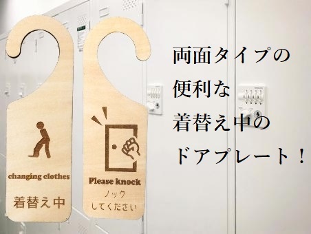 - 当店オリジナル 両面タイプ 着替え中 ノックしてください 木製 吊り下げ ドアノブ サインプレート 更衣室 ドアプレート 送料無料
