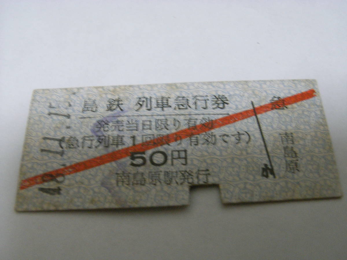 - 島鉄列車急行券 50円 昭和48年11月15日 南島原駅発行 島原鉄道