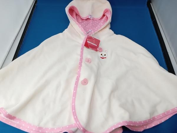 > 未使用 ミキハウス ポンチョ MIKIHOUSE UVカット 70-90 ベージュ ウサギ ワンポイント パイル フード タグ付き