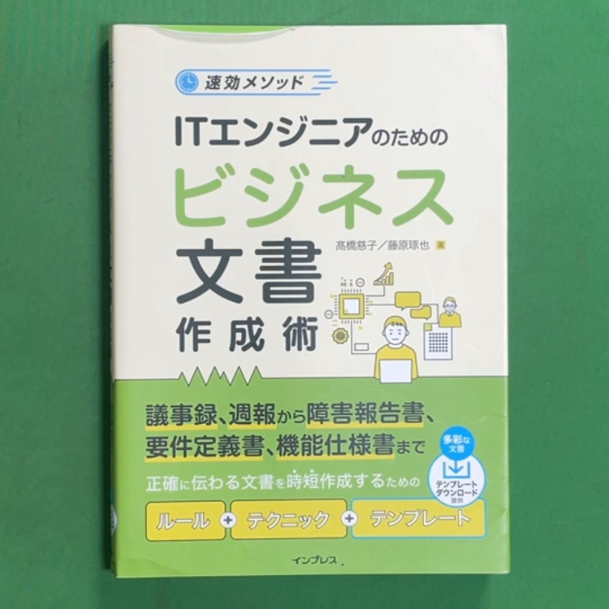 - 速効メソッド ITエンジニアのためのビジネス文書作成術 インプレス 高橋慈子 藤原琢也 2021年 令和3年7月21日発行
