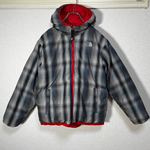 > ノースフェイス ダウンジャケット リバーシブル グース 刺繍 チェック グレーKC 古着 入手困難 激レア 人気 希少 子供レディース