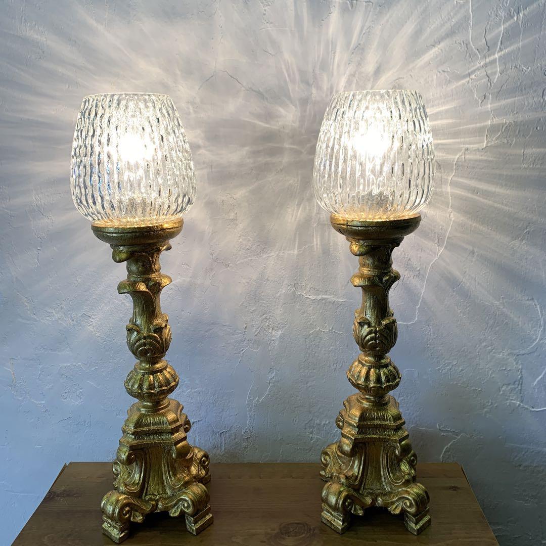 - 照明/アンティーク ビンテージ テーブルランプ ペア 【2点】/ガラス・テーブルランプ/50s60s70s80s90s