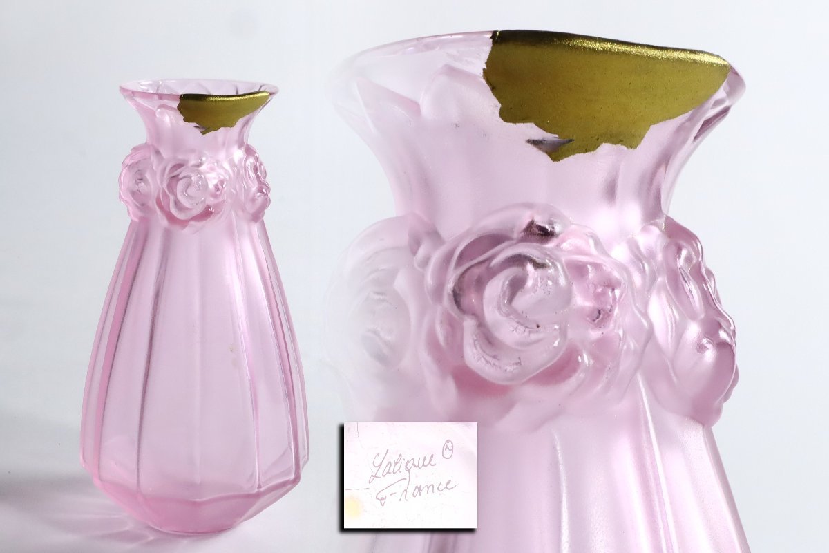 ・金継ぎの美 ラリック製 ピンク フラワーベース / Rene Lalique 花瓶 一輪挿し