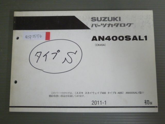 - スカイウェイブ400 タイプS ABS AN400SAL1 CK45A 1版 スズキ パーツリスト パーツカタログ 送料無料