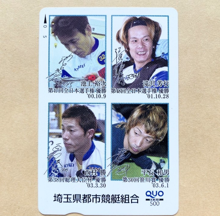 - 【使用済】競艇クオカード 池上裕次 滝沢芳行 西村勝 平石和男 埼玉県都市競艇組合