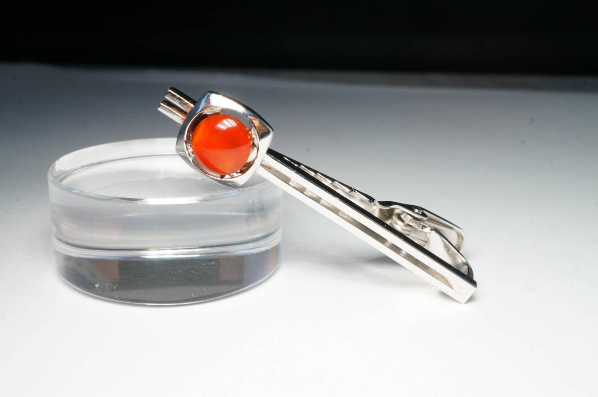 - 【限定特別即決価格!早い者勝ち!】極上天然赤瑪瑙(アゲート)ルース付ネクタイバー