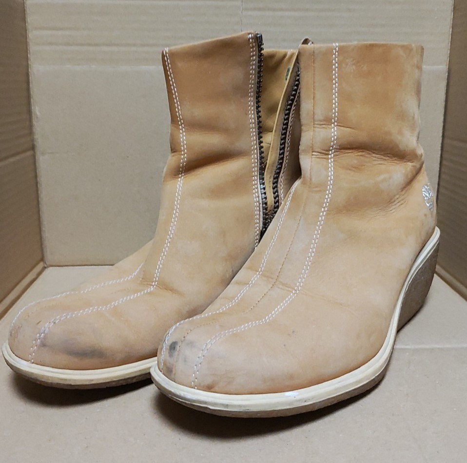 - 864◆ウェッジソールブーツ スウェード ライトベージュ 茶 ブラウン Timberland ティバーランド W8 25cm ウエッジソール 希少 ブーティ