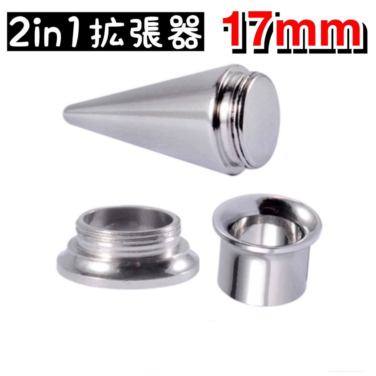 - 2in1 ピアス 拡張器 ボディピアス 17mm 18mm ダブルフレア 奇数サイズ