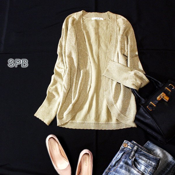 - ☆☆ 美品 (株)ワールド SPB エスピービー ☆☆ 綺麗め ノーボタン ラメ ニット カーディガン M 春 秋 合服 23A12