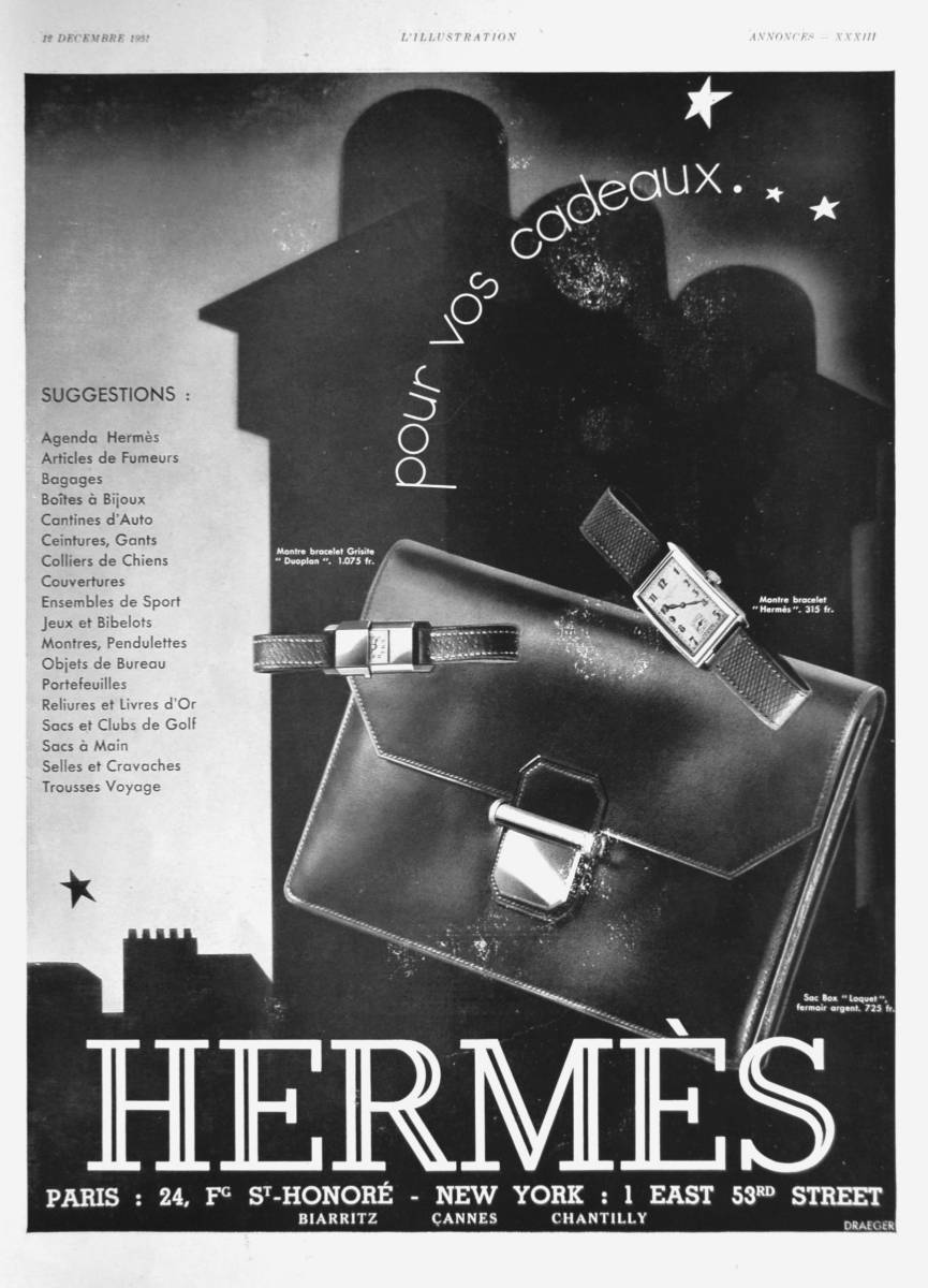 - 稀少!1931年エルメス広告/Hermes/時計/鞄/バッグ/ファッション/ブランド/アールデコ/フレンチ/Z