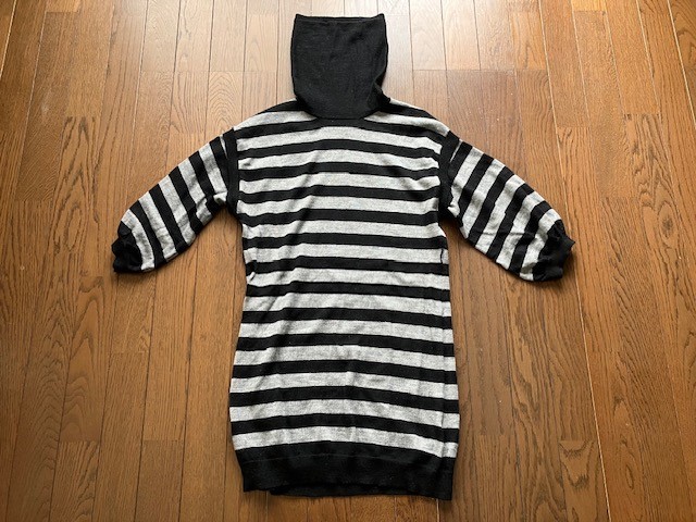 > UNIQLO ユニクロ タートルネック M 身幅44cm 着丈76cm 黒×グレー ボーダー ニット ウール 毛 七分袖 伸縮性 送料無料 底値