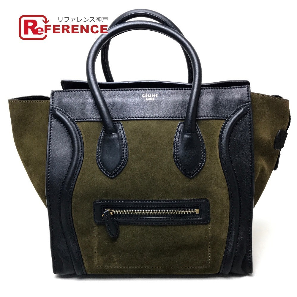 > CELINE セリーヌ ラゲージ ミニショッパー ショルダーバッグ 肩掛け カーキ トートバッグ スエードxレザー レディース