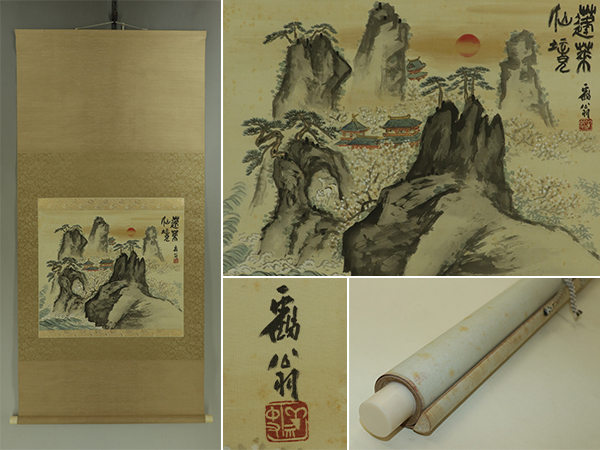 - 【真作】皐月鶴翁【蓬莱仙境】◆絹本◆共箱◆掛軸 t07015