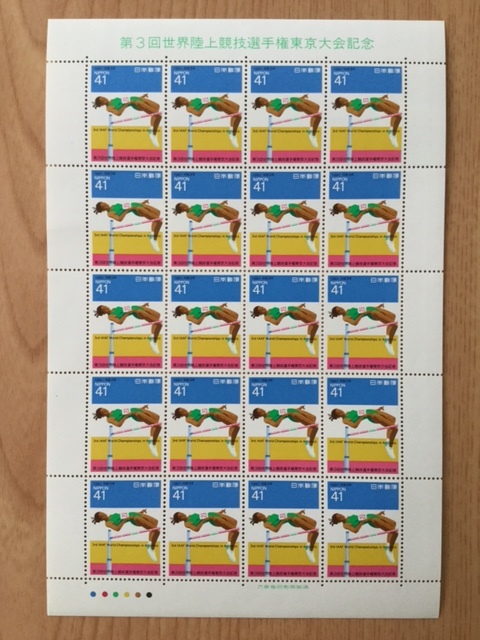 - 世界陸上競技選手権東京大会記念 (第3回) 走り高跳び 1シート(20面) 切手 未使用 1991年