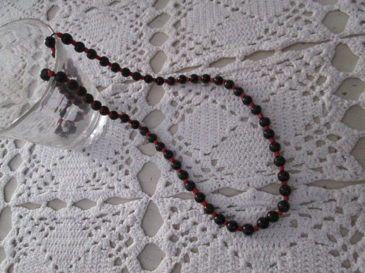 - フランスアンティーク・ビンテージ ビーズのネックレス 黒+赤玉/蚤の市で購入したお土産、ビンテージアクセサリーのポイント使いで♪