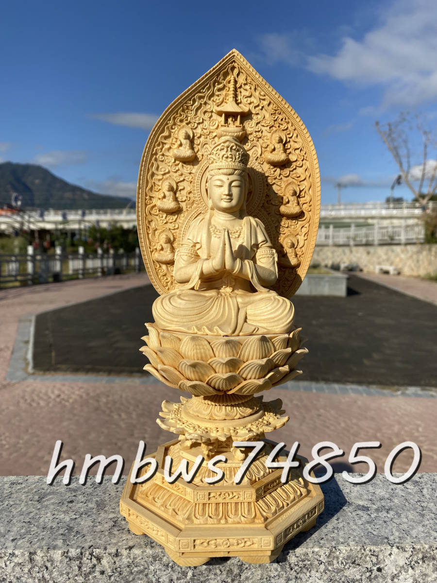 - 新品 仏教美術 普賢菩薩 坐像 仏像 彫刻 ヒノキ檜木 自然木 職人 手作り 置物 工芸品 東洋彫刻 高さ32cm