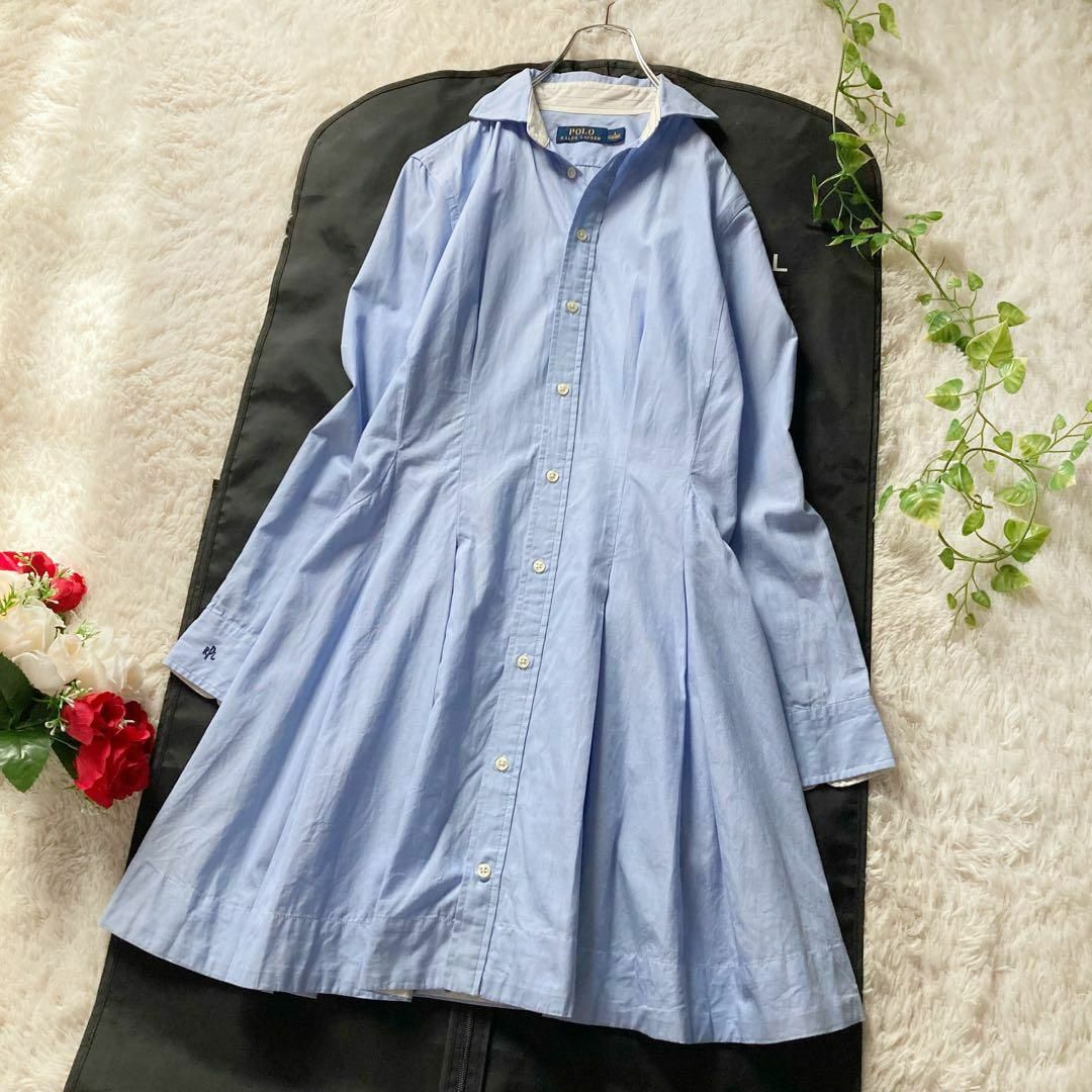 - ポロ ラルフローレン フレアシャツワンピース ロゴ刺繍 コットン 現行タグ 4サイズ=M相当 POLO RALPH LAUREN