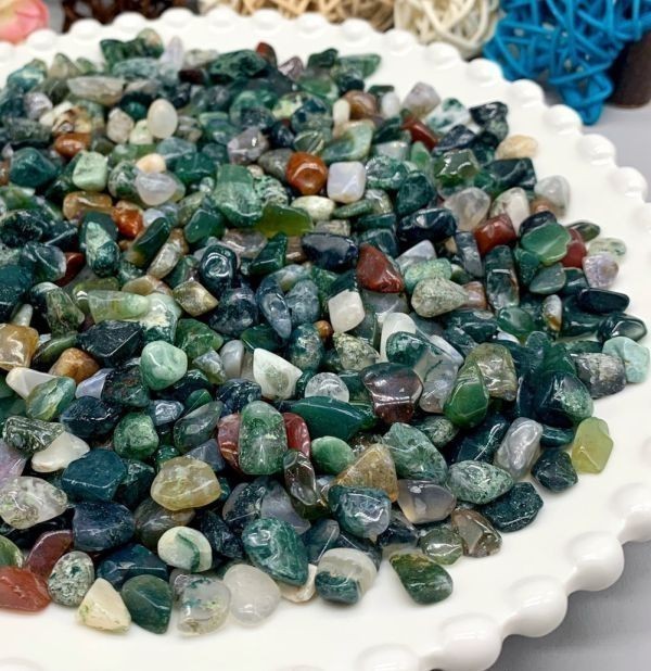 - 浄化 さざれ 高品質 風水 装飾 水タンク 100g 天然石 パワーストーン 7-9mm モスアゲート 苔瑪瑙 Agate