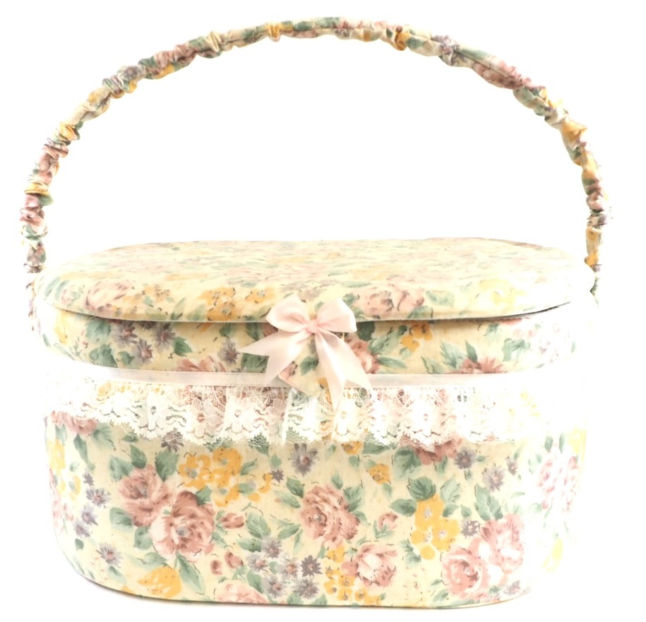 - ふかふかとした手触りと可愛らしいお花柄!昭和レトロ 裁縫箱 ハンドメイド 1970年代 KEN512