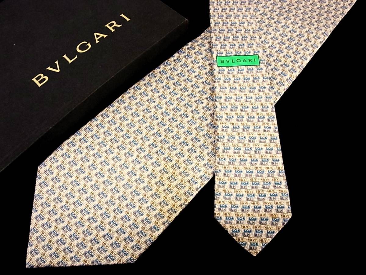 - 5G0404【超特売】【BVLGARI】ブルガリ 【人気の総ロゴ】「最高級セッテピエゲ」 ネクタイ ★★★