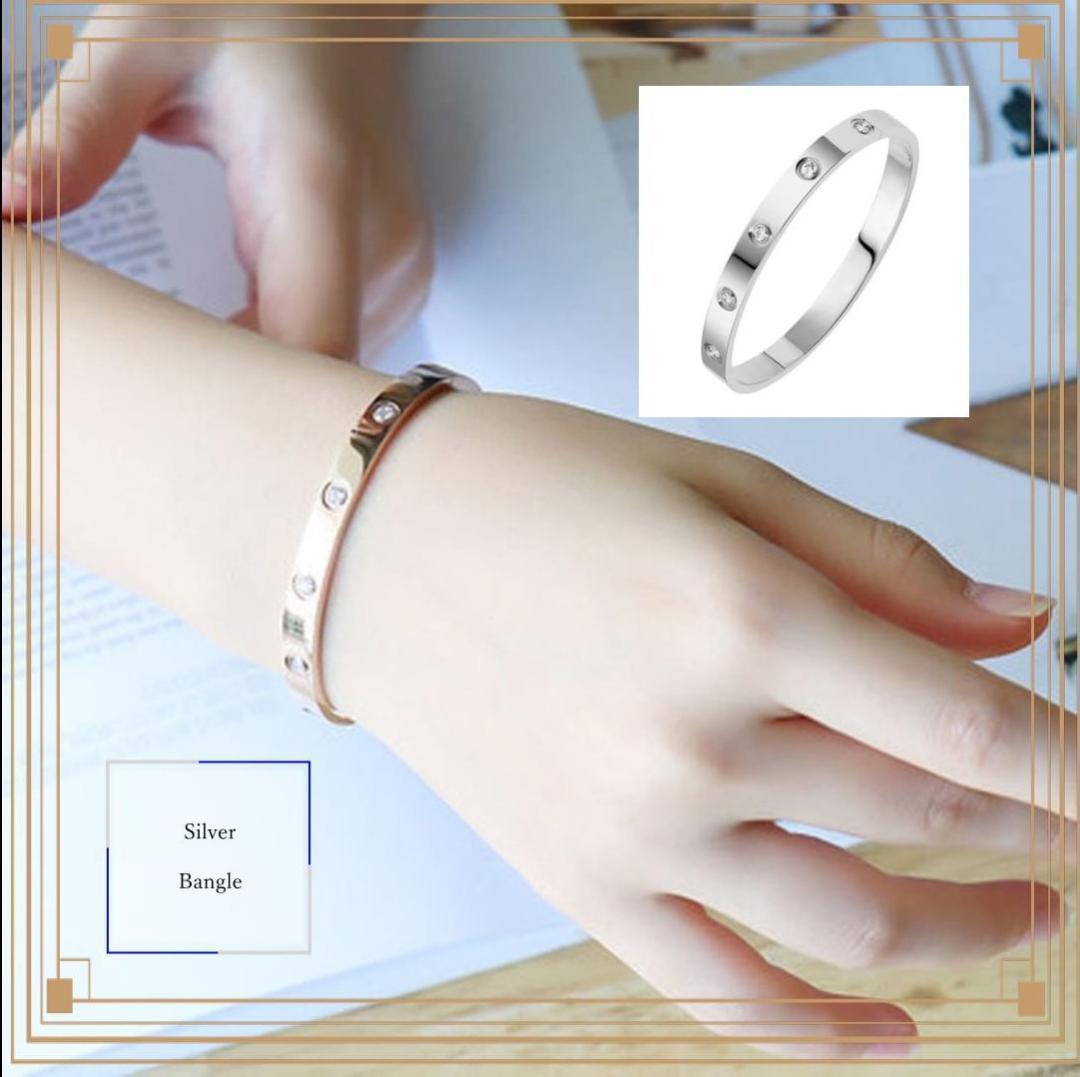 - シンプルに魅せる♪ラブブレス型バングル ブレスレット♪シルバーステンレスⅣ