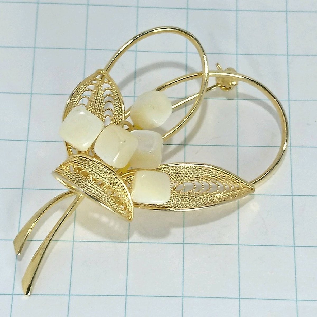 - 送料無料)ビンテージ☆草花モチーフ☆アンティーク ブローチ A21624