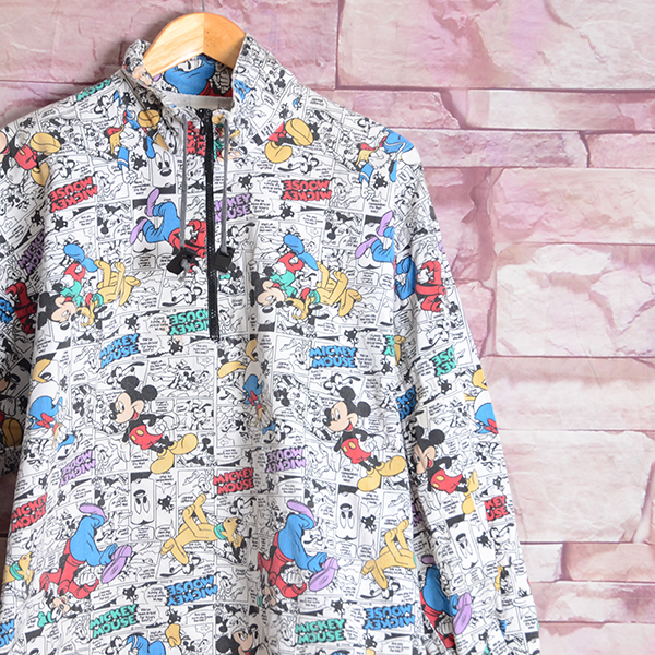 - AS5902 ディズニー ミッキー コミック柄 ハーフジップ パーカ M 肩58 総柄 カナダ製 メール便 xq