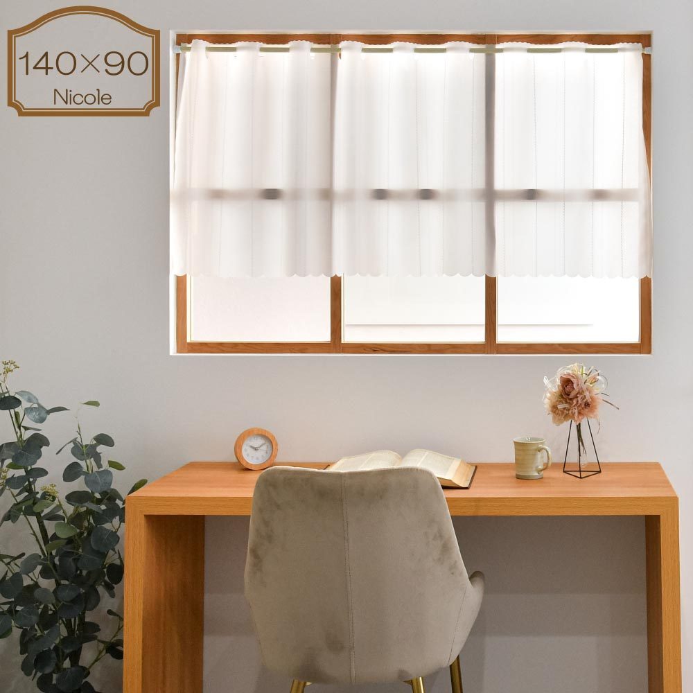 - カフェカーテン レース 長め ロング丈 90cm丈 UVカット ミラー 140cm幅 テイジンエコリエ 遮熱 断熱 日本製