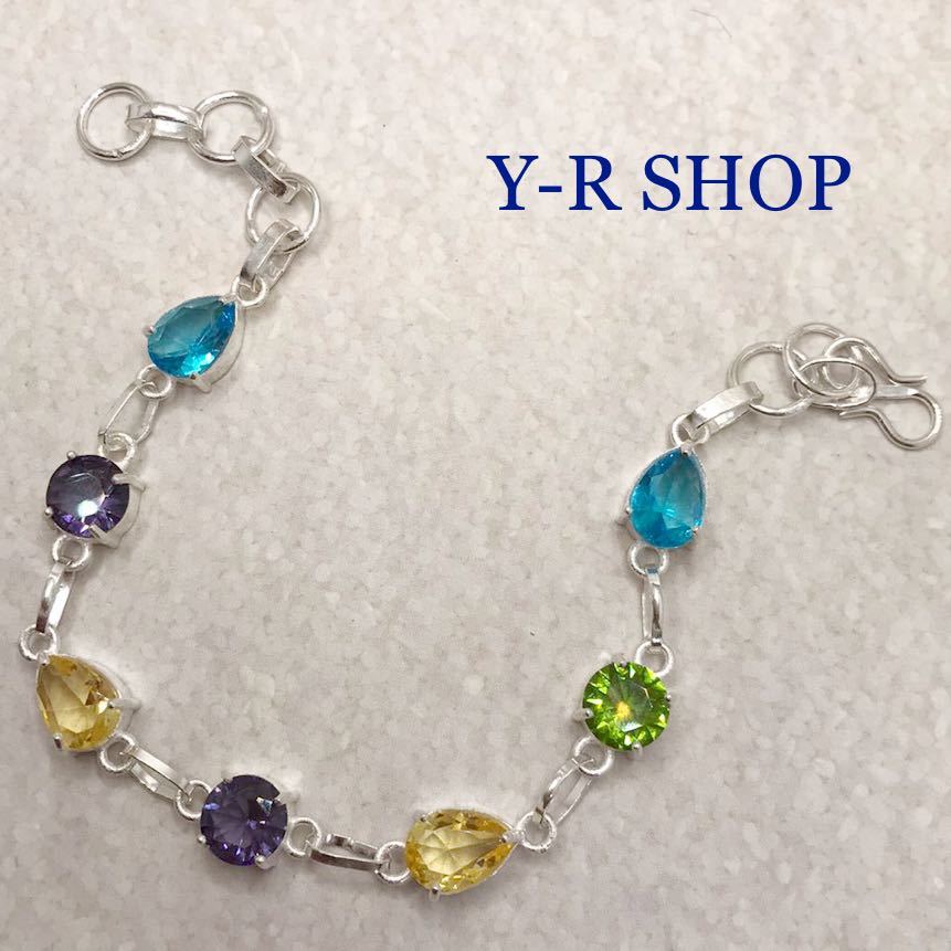 - 訳ありマルチカラーストーンのエスニックブレスレット★レディース腕輪シルバー 925刻印キュービックジルコニアインド新品宝石