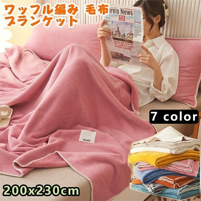 - ブランケット ワッフルケット タオルケット 毛布 シングル 柔らかく肌触り 暖かい ワッフル編み 通気性が良い 200×230cm☆7色選択/1点