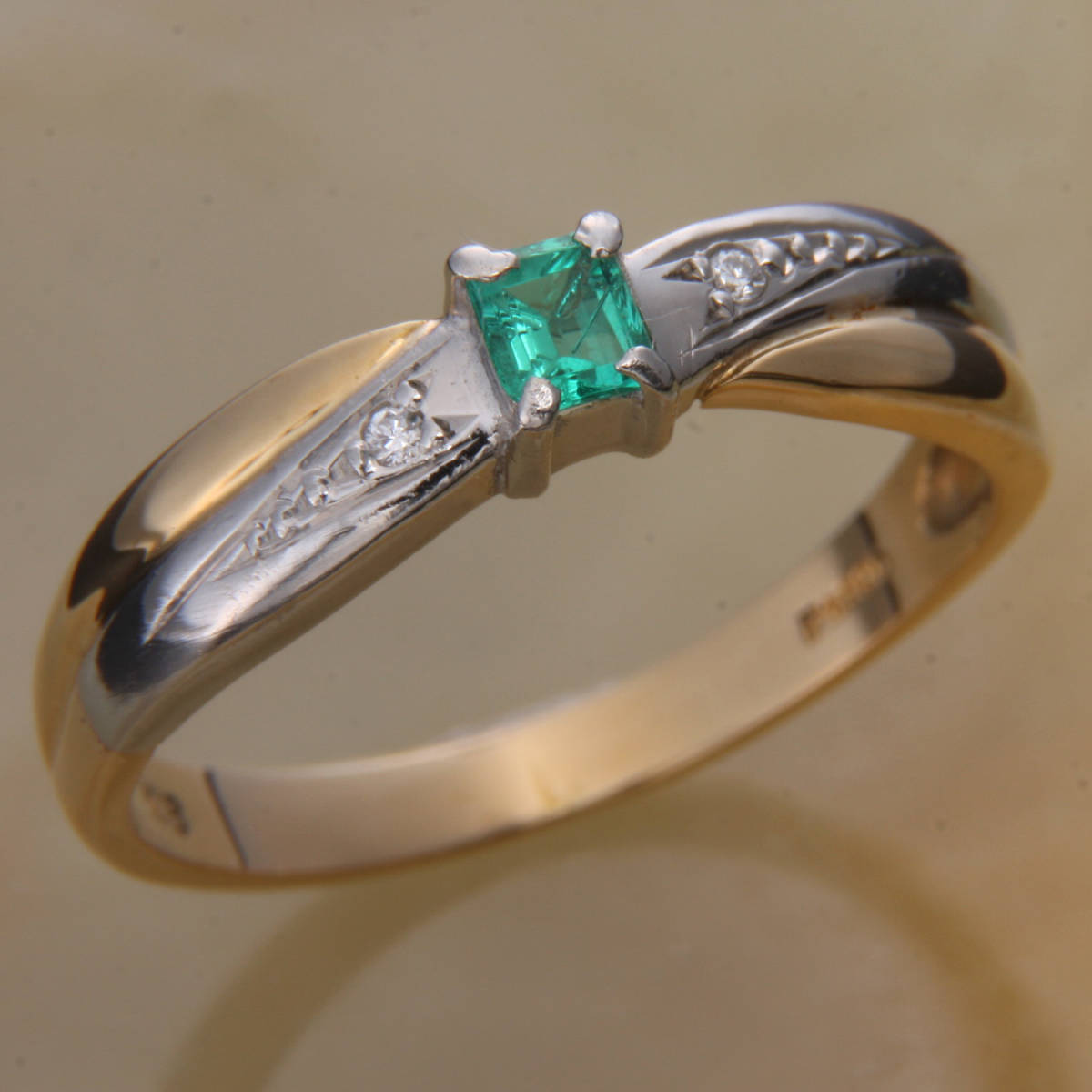 - ke9800◆K18/Pt900リング エメラルド/ダイヤモンド 11号