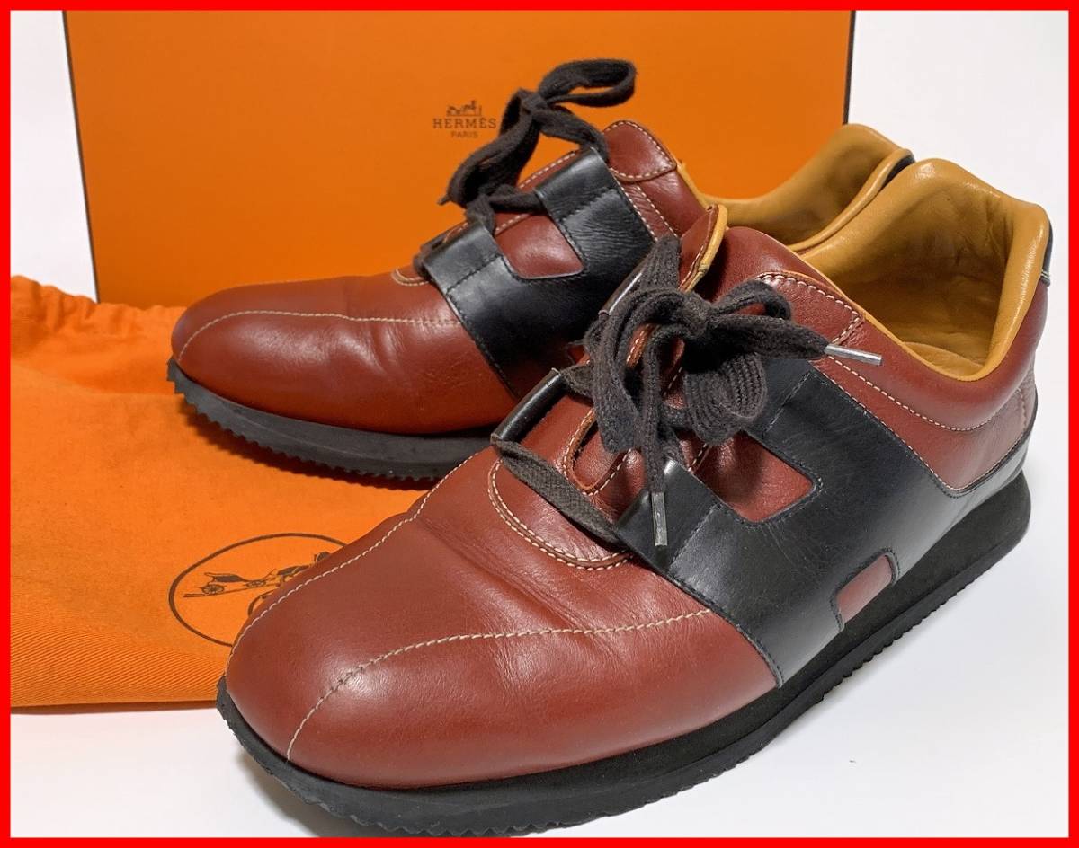 - 即決 HERMES エルメス 41≒25.5cm スニーカー 赤茶 レザー 箱・保存袋 メンズ jtu