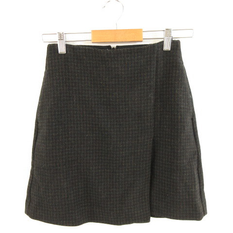 > ユニクロ UNIQLO ウールブレンドラップミニスカート チェック 黒 緑 茶 58 *A569 レディース