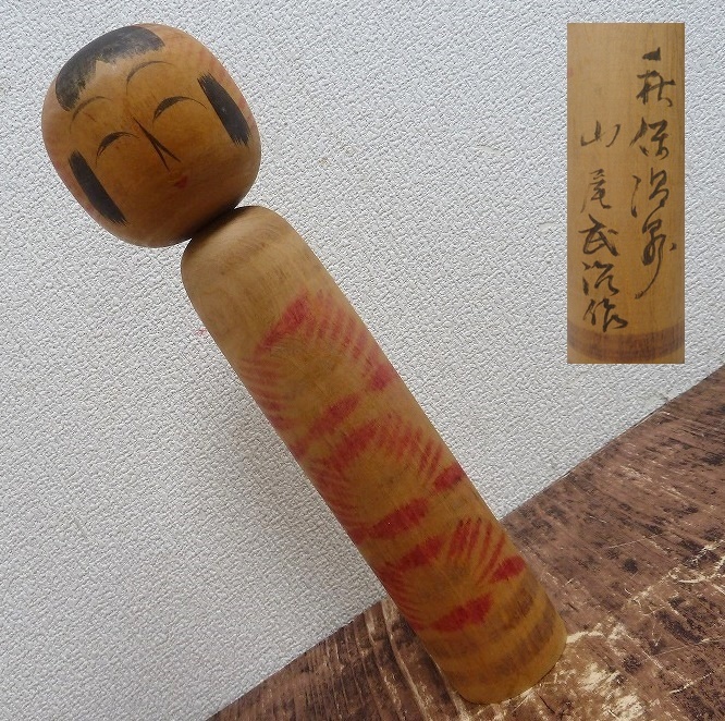 - (☆BM)こけし[1124-⑦]作者サインあり/高さ27㎝ 木製 コケシ 日本人形 旧家蔵出し品 アンティーク レトロ 小木偶人KOKESHI