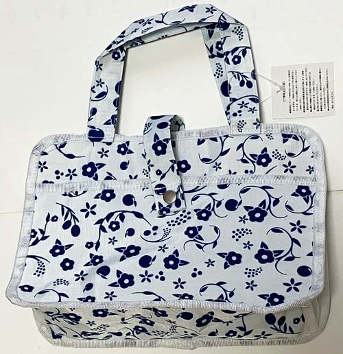 - ◆ミニ・トートバッグ◆横メッシュ☆【新品・未使用・タグ付き】白地に紺★花柄★涼しげ